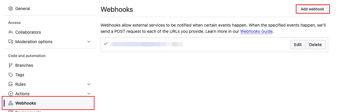 2. 깃허브에 코드를 푸시 또는 병합할 때 액션을 취하기 위해 webhook설정을 해야합니다.