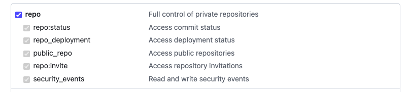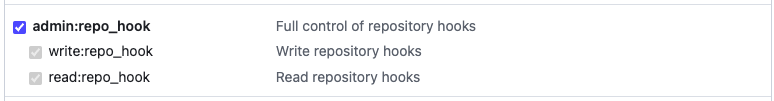 저는 repo에 접근하기 위해 repo와 hook을 위한 repo_hook을 체크하였습니다.