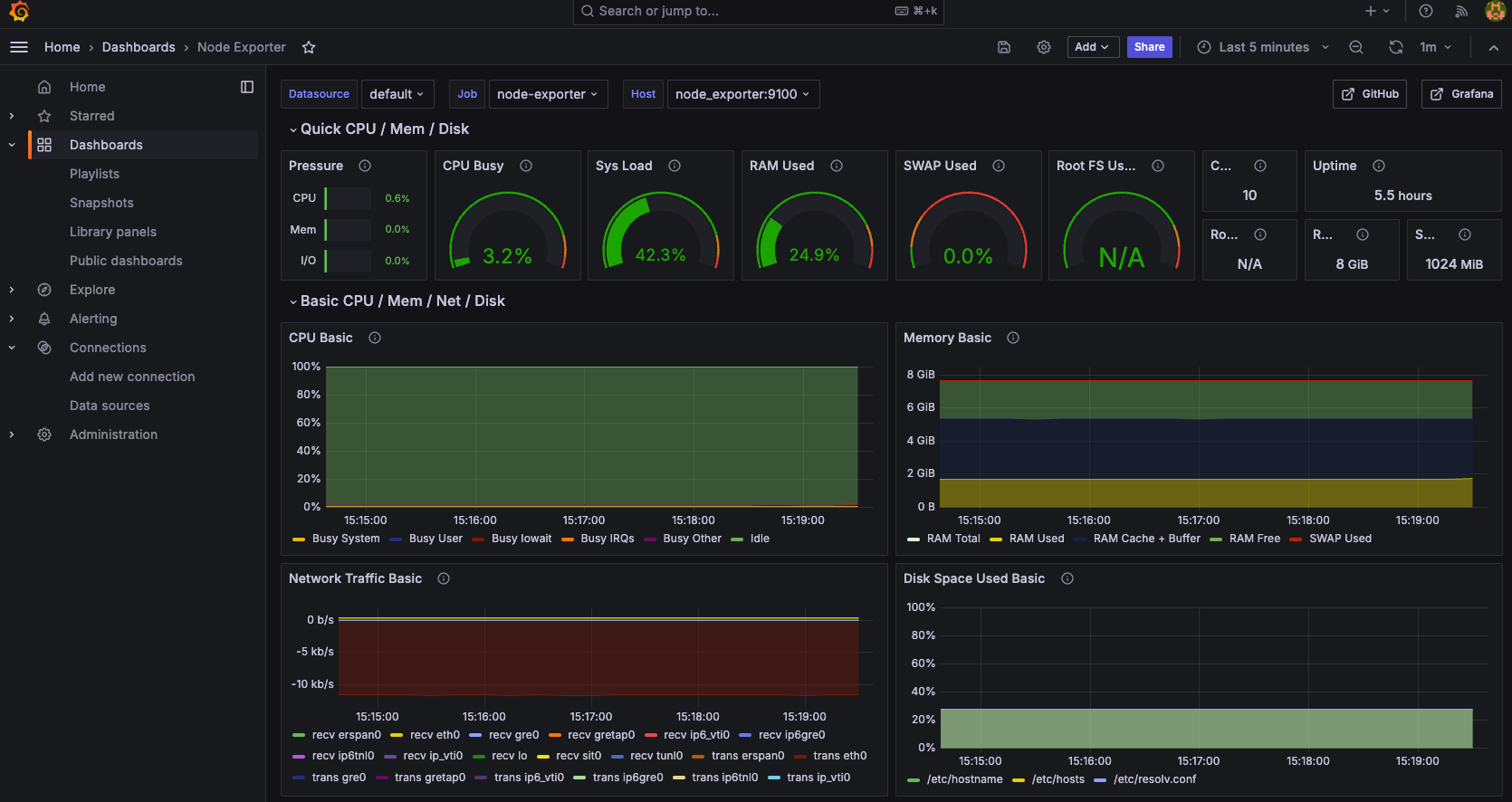 하는 생각에 프로메테우스와 그라파나를 연동해 호스트 머신의 리소스를 모니터링 해봤다.