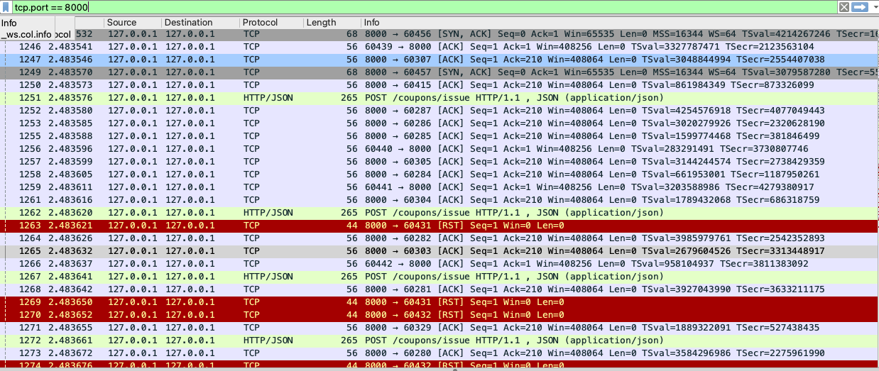 먼저 첫 번째 이미지를 보면 클라이언트 60431, 60432에서 RST패킷을 던지는 것을 확인할 수 있습니다.